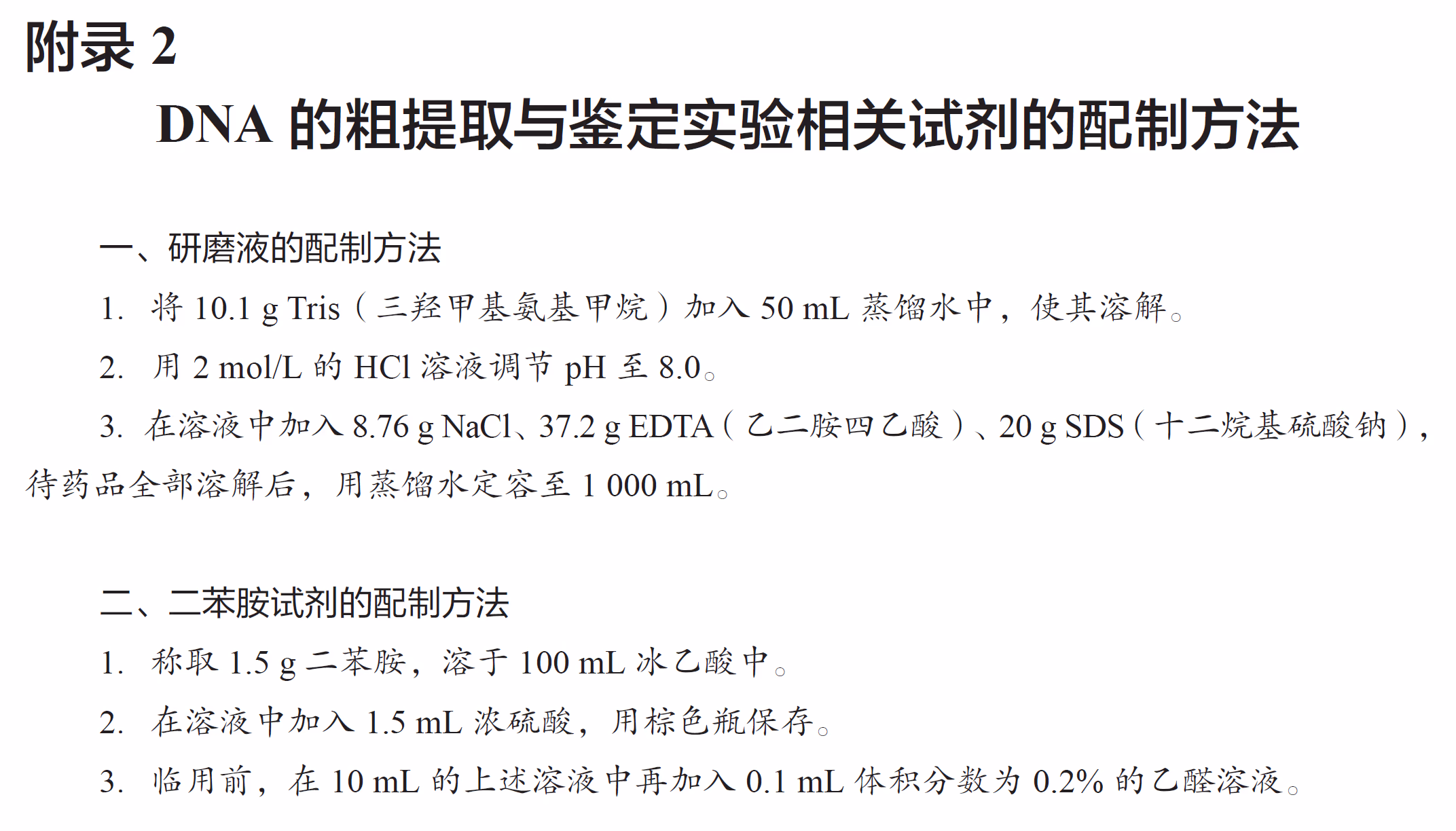 DNA、RNA、蛋白质和脂质等在物理和化学性质方面存在差异,可以利用这些差异,选用适当的物理或化学方法对它们进行提取。例如,DNA 不溶于酒精,但某些蛋白质溶于酒精,利用这一原理,可以初步分离 DNA 与蛋白质。DNA 在不同浓度的 溶液中溶解度不同,它能溶于 的 溶液。在一定温度下,DNA 遇二苯胺试剂会呈现蓝色,因此二苯胺试剂可以作为鉴定 DNA 的试剂。