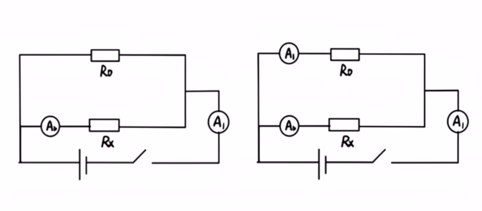 最容易想到的测量方法是直接测量电流和电阻两端的电压,但是我们非理想电流表、电压表会分压、分流,导致产生系统误差,于是就产生了内接法和外接法。