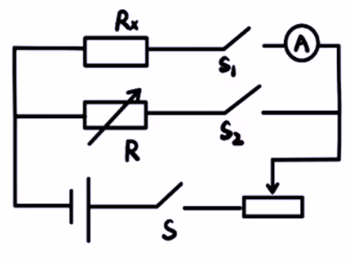 断开开关 ,闭合开关 ,调整电阻箱,使得电流表示数和上一步相同。