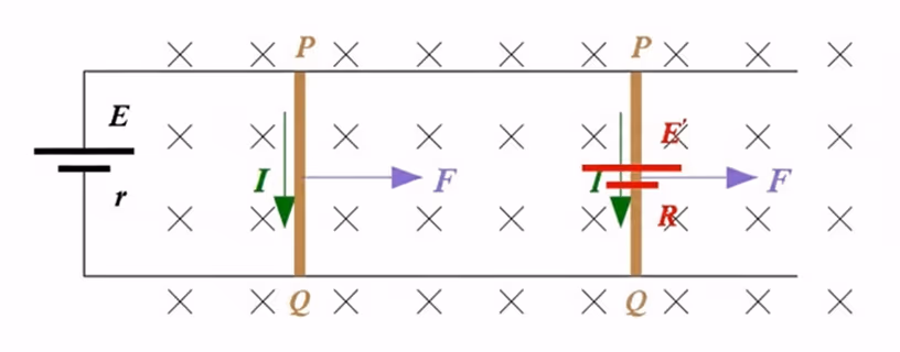我们知道,导线在磁场中运动会产生感应电流,我们知道电流在磁场中会受到安培力,因此列出: