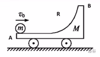 问:小球运动到点 B 后,能达到的最大高度是多少(水平共速模型)。