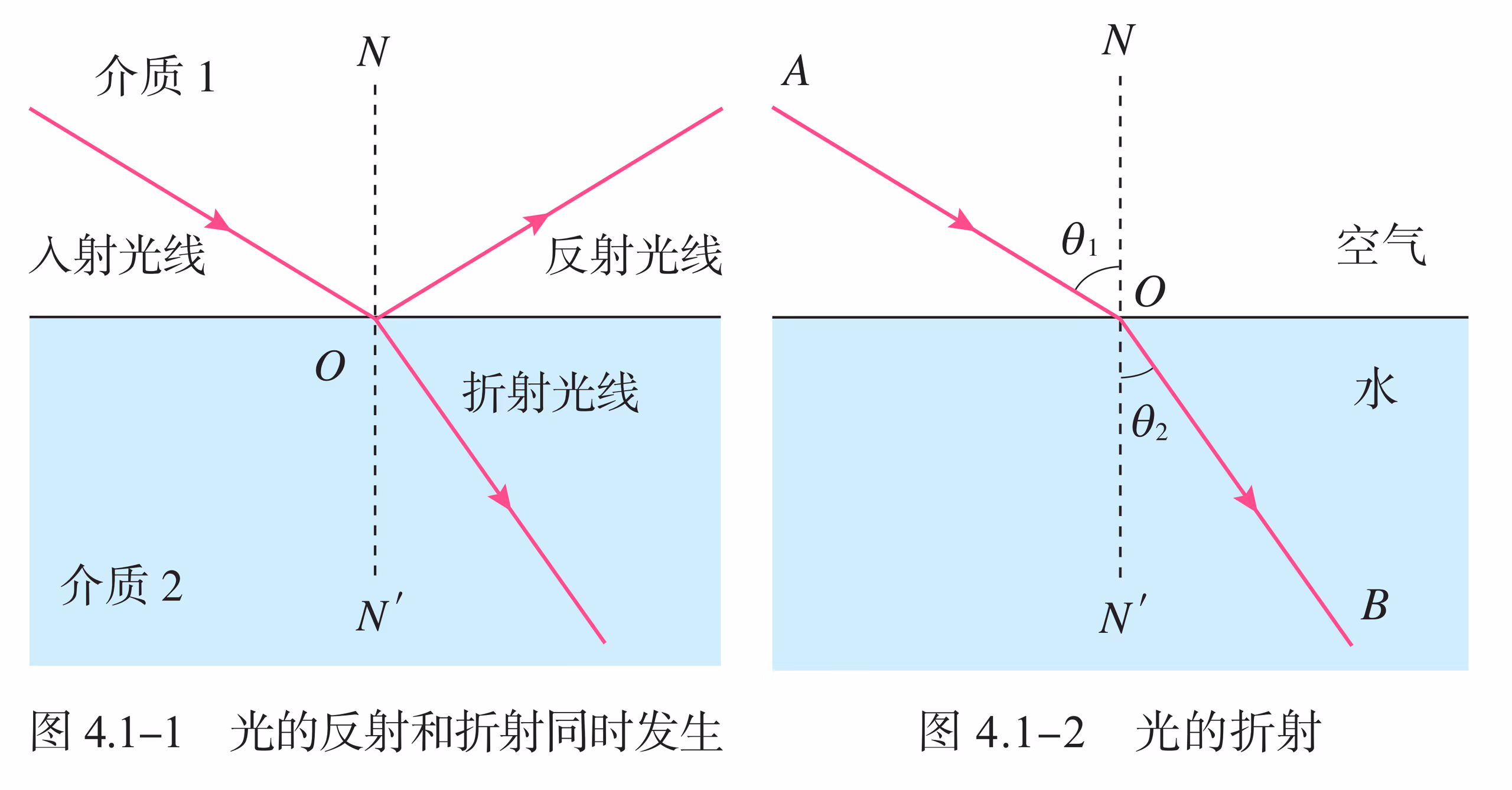 光的折射定律:折射光线、入射光线、法线在同一平面内,折射光线、入射光线在法线两侧。入射角的正弦跟折射角的正弦成正比,如果用 来表示这个比例常数,就有: