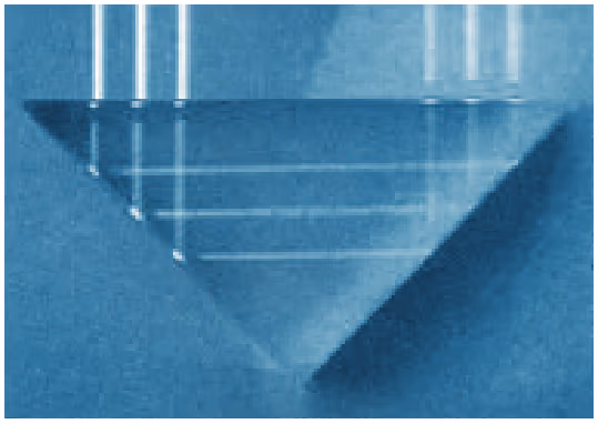 偏振光并不罕见。除了从太阳、白炽灯等光源直接发出的光以外,我们通常看到的绝大部分光,都是不同程度的偏振光。自然光在玻璃、水面、木质桌面等表面反射时,反射光和折射光都是偏振光(图 4.6-5),入射角变化时偏振的程度也有变化。