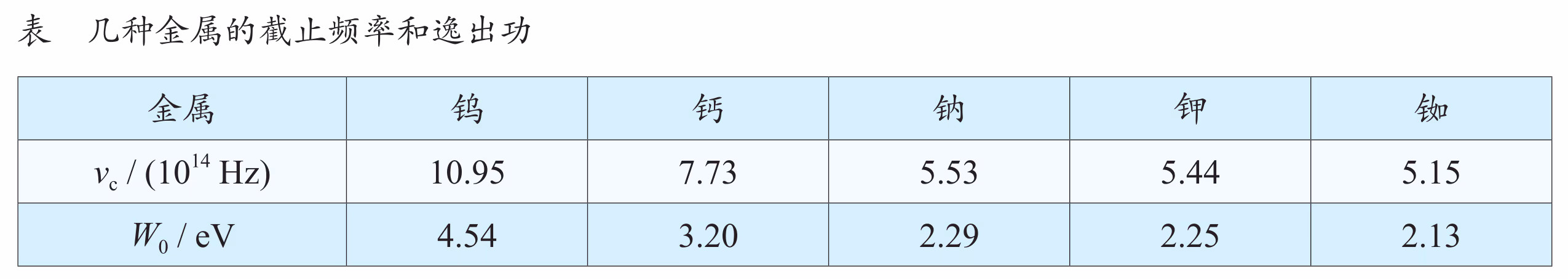 实验表明,不同金属的截止频率不同。换句话说,截止频率与金属自身的性质有关。