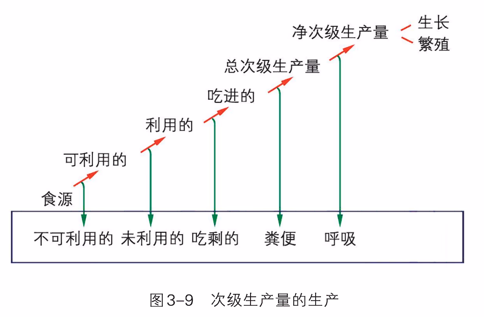 次级生产力的计算方法一般可以根据同化量和呼吸量计算,也可以通过个体体重的增加来估算。动物和异养微生物生长、繁殖和营养物质的贮存都是同化过程的表现形式。单位时间、单位空间内,通过动物和异养微生物生长、繁殖而增加的生物量或贮存的能量称为次级生产量。在一个农业生态系统中,同一种动物不同品种的生产力有一定的差异,所以选育良种对提高生产力具有重要的意义。