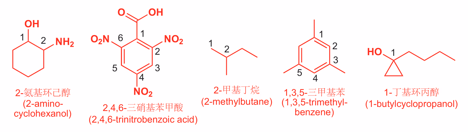 - 母体官能团定为 号位: 例如在“甲苯”中,甲基所在的碳自动定为 号,不需要写"1-甲基..."。