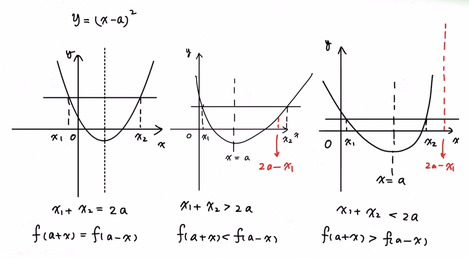 f(x2)=f(x1)=f(2C−Δ)<f(2C+Δ) 因为 x2>2C,因此 x2>2C+Δ,那么
